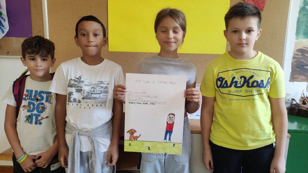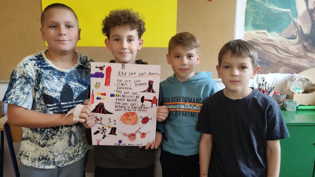 Učenici 3.a razreda su na satovima LK i SR sudjelovali u radionici “Kad sam…mogu…”. Cilj aktivnosti bio je omogućiti djeci da sami promišljaju o načinima kako iskazati emocije na društveno prihvatljiv način. Aktivnosti su uključivale razgovor i izradu plakata. Na satu hrvatskog jezika opisali su prijatelja iz razreda u nastavnoj jedinici Opis lika. Osvijestili su po čemu su slični, a po čemu različiti.