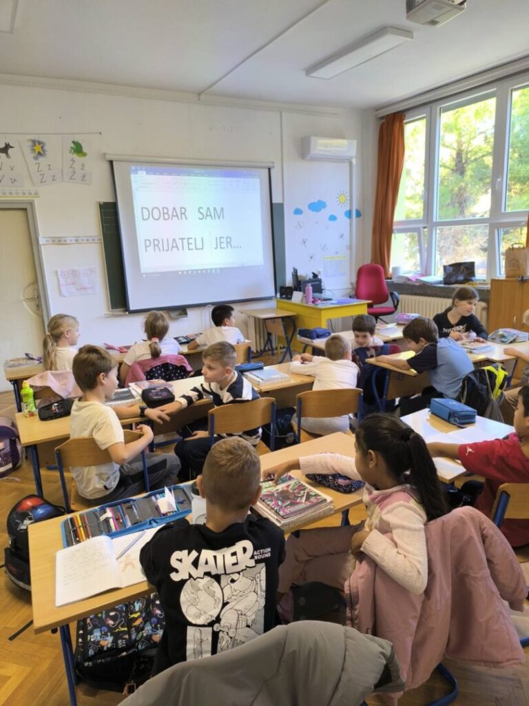 U sklopu obilježavanja Dječjeg tjedna, učenici 3. b razreda sudjelovali su u aktivnosti posvećenoj razvoju empatije, nenasilja i prepoznavanju osjećaja. Pogledali su kratki animirani film „Muha koja nije mogla letjeti“ koji je potaknuo razgovor o tome kako prepoznati i imenovati vlastite osjećaje te kako uočiti emocije kod drugih. Nakon gledanja filma, učenici su kroz razgovor i primjere iz svakodnevnog života promišljali o važnosti razumijevanja i međusobnog poštovanja. Aktivnost je potaknula otvorenost, suosjećanje i bolju komunikaciju među učenicima, ali i spoznaju da empatija nije samo razgovor – već mala djela svaki dan: pružiti osmijeh, pomoći nositi knjige, utješiti prijatelja.