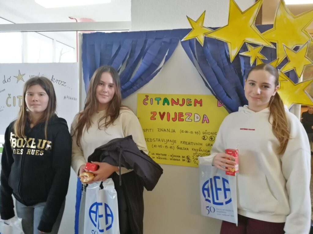Učenice sedmih razreda Stella Matić, Reina Mudražija i Eli Volarić sudjelovale su na županijskoj razini kviza “Čitanjem do zvijezda” te kao tim osvojile 9. mjesto.
